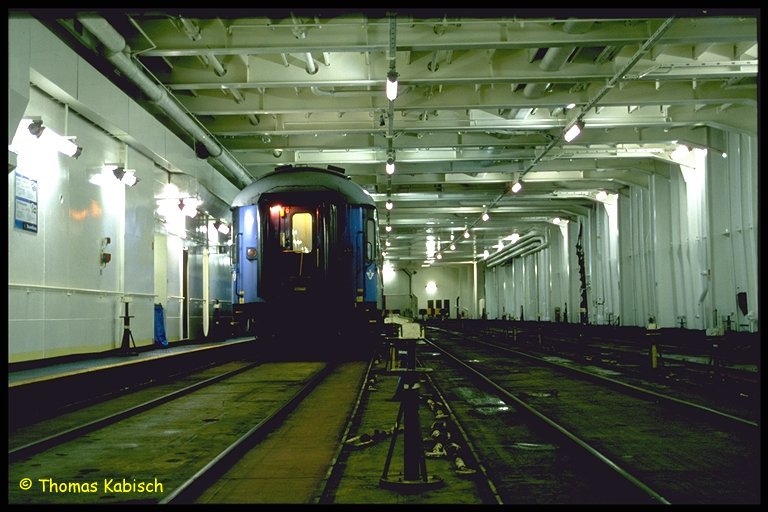 Zug im Schiff: EN111 auf der Sassnitz.